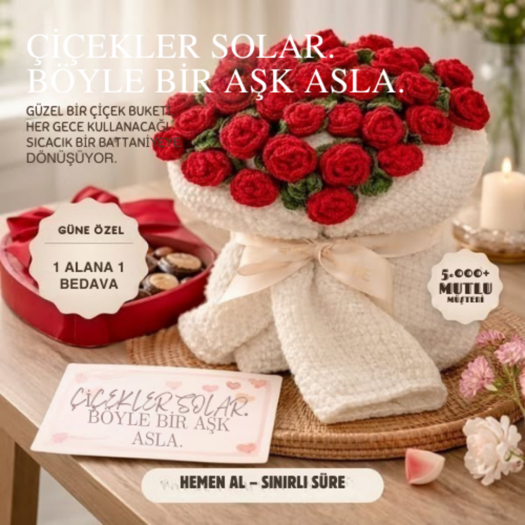 Açıldığında çiçek buketi gibi, yumuşacık dokusu ile hem sıcak tutar hem de sevdiklerinizi mutlu eder. 🎁💖